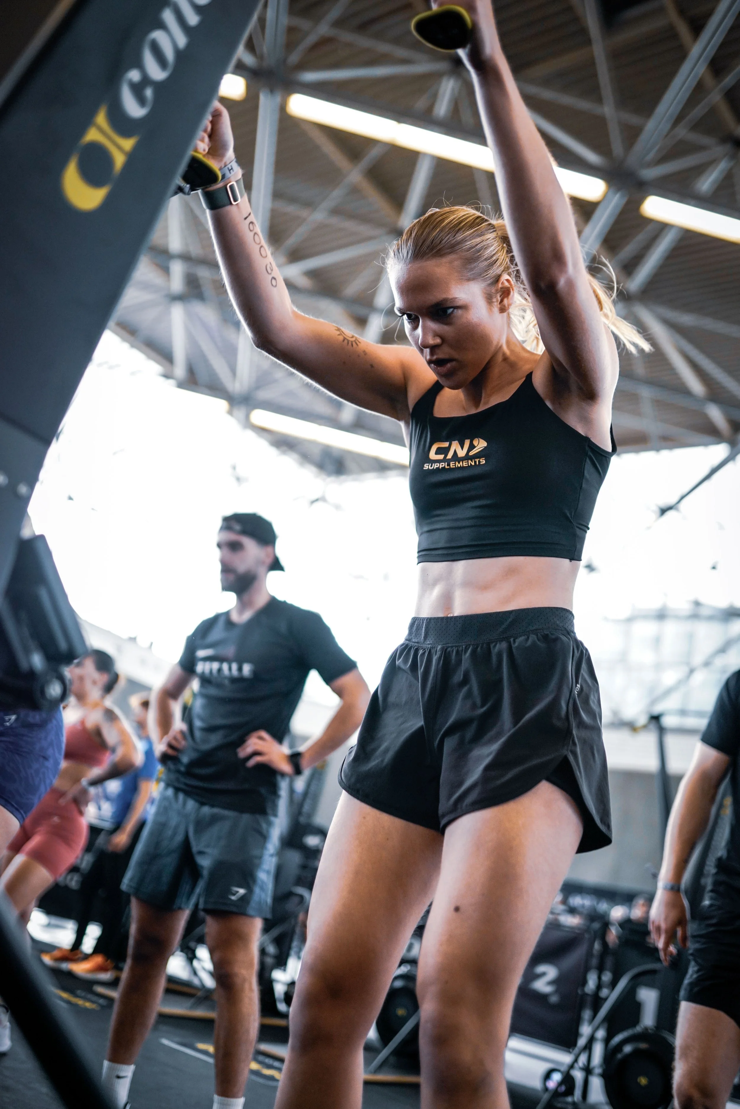 Sportdiëtist en atleet Noa Boertien actief tijdens kickbokswedstrijd